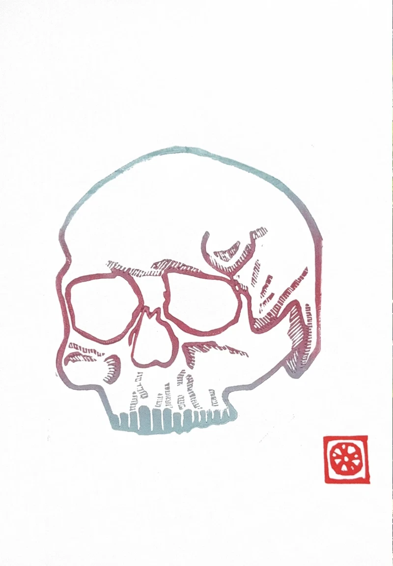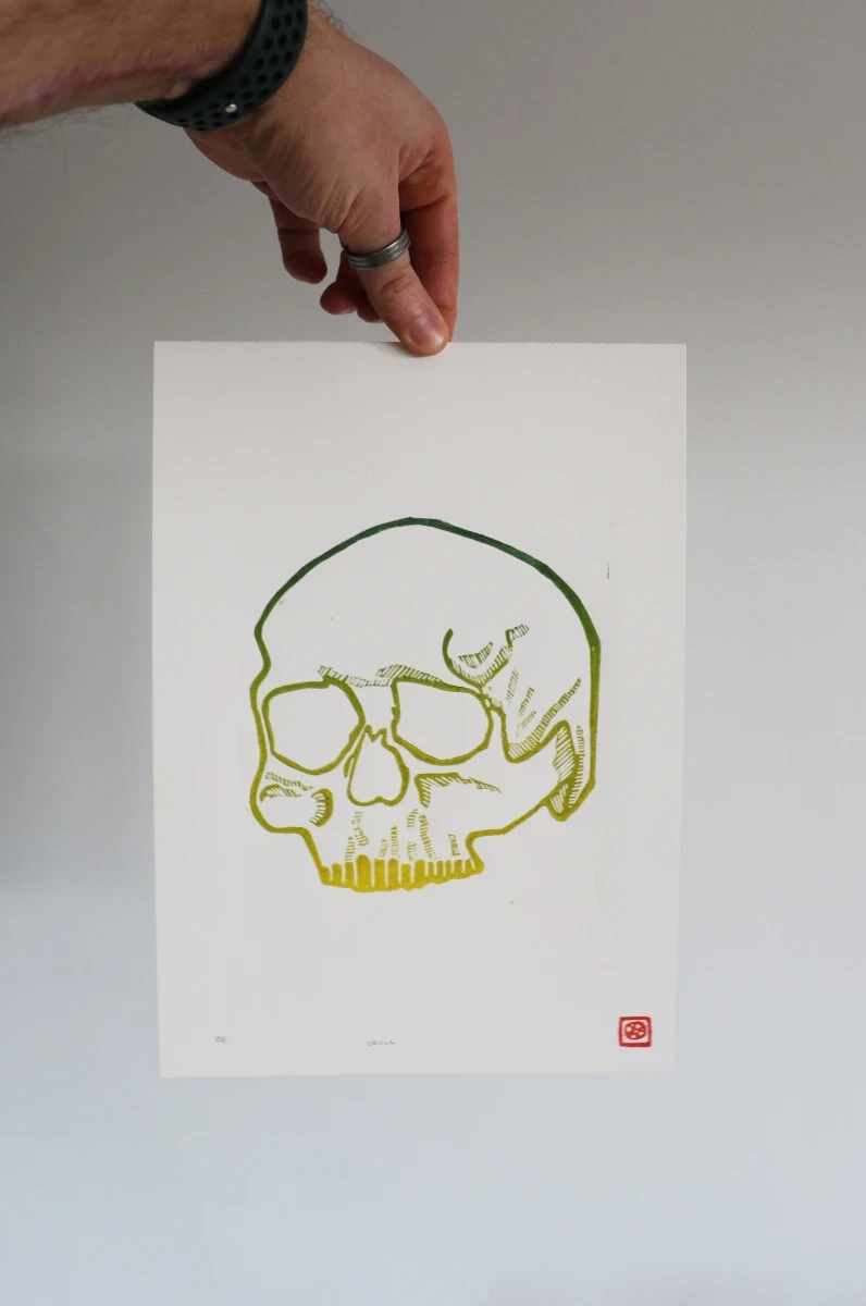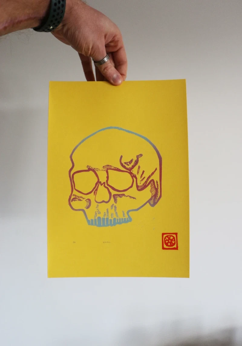 2 colour gradient, hand-printed original linocut, A4.