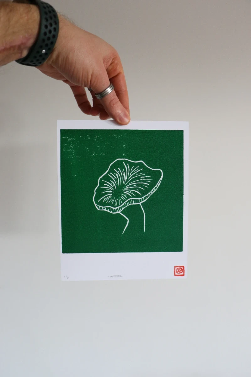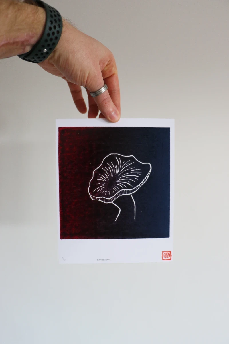 1 & 2 colour hand-printed original linocut, custom size 16.2cm x 20.3cm.